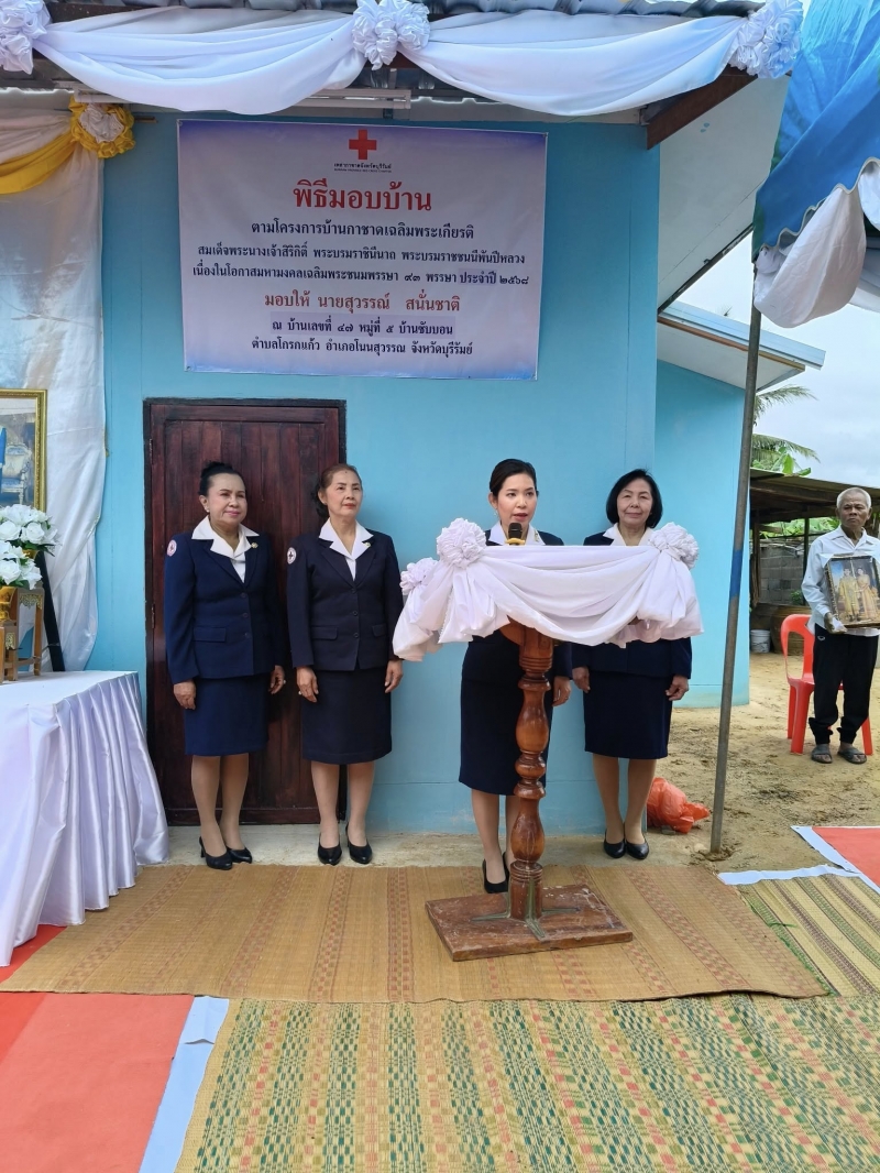 นายเทศมนตรีตำบลโกรกแก้วพร้อมคณะผู้บริหาร สมาชิกสภาเทศบาล ข้าราชการและพนักงานเทศบาลตำบลโกรกแก้วร่วมพิธีมอบบ้านตามโครงการบ้านกาชาดเฉลิมพระเกียรติสมเด็จพระนางเจ้าสิริกิติ์ พระบรมราชินีนาถทพระบรมราชชนนีพันปีหลวงเ นื่องในโอกาสมหามงคลเฉลิมพระชนมพรรษา 93 พรรษาประจำปี 2568 มอบให้ นายสุวรรณ์ สนั่นชาติ ณ บ้านเลขที่ 47 หมู่ที่ 5 บ้านซับบอนตำบลโกรกแก้ว อำเภอโนนสุวรรณ จังหวัดบุรีรัมย์