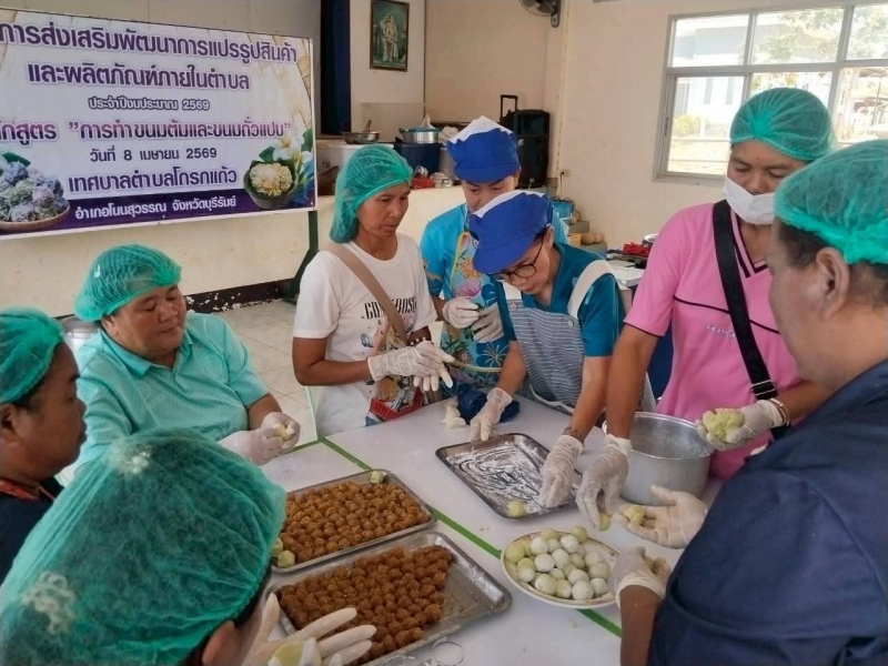 กองสวัสดิการสังคม เทศบาลตำบลโกรกแก้ว จัดทำโครงการส่งเสริมพัฒนาการแปรรูปสินค้าและผลิตภัณฑ์ภายในตำบล ประจำปีงบประมาณ 2569 หลักสูตร การทำขนมต้มและขนมถั่วแปบ โดยมีกลุ่มสตรีภายในตำบลโกรกแก้วที่สนใจและเข้าร่วมอบรมเป็นจำนวนมาก เนื่องจากสามารถต่อยอดสร้างอาชีพได้ต่อไปภายในอนาคต