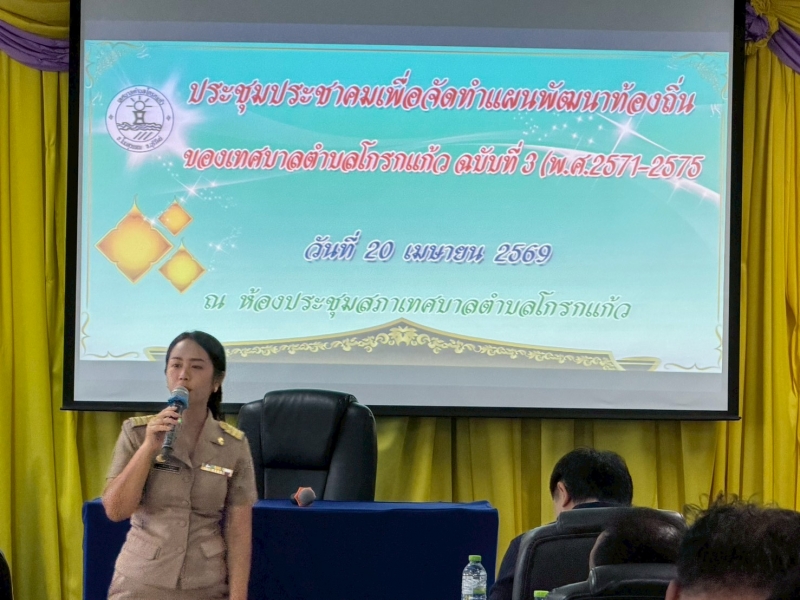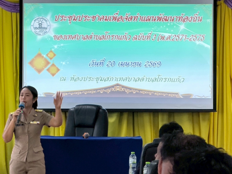 เวลา 10:00 น.ณ ห้องประชุมสภาเทศบาลตำบลโกรกแก้ว งานวิเคราะห์นโยบายและแผน สำนักปลัดเทศบาล ประชุมประชาคมเพื่อจัดทำแผนพัฒนาท้องถิ่น ฉบับที่ 3 (พ.ศ 2571 - 2575)ของเทศบาลตำบลโกรกแก้ว เพื่อให้การจัดทำแผนพัฒนาท้องถิ่น บรรลุเป้าหมายตามวัตถุประสงค์และทิศทางการพัฒนาท้องถิ่นสอดคล้องกับแนวทางการปฏิบัติของกระทรวงมหาดไทยและรับทราบปัญหา ความต้องการ ประเด็นการพัฒนา เพื่อจัดทำแผนพัฒนาท้องถิ่นของเทศบาลตำบลโกรกแก้วต่อไป